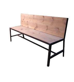 Banco de estructura de hierro con tablones de madera envejecida, diseñado y creado por Dadra